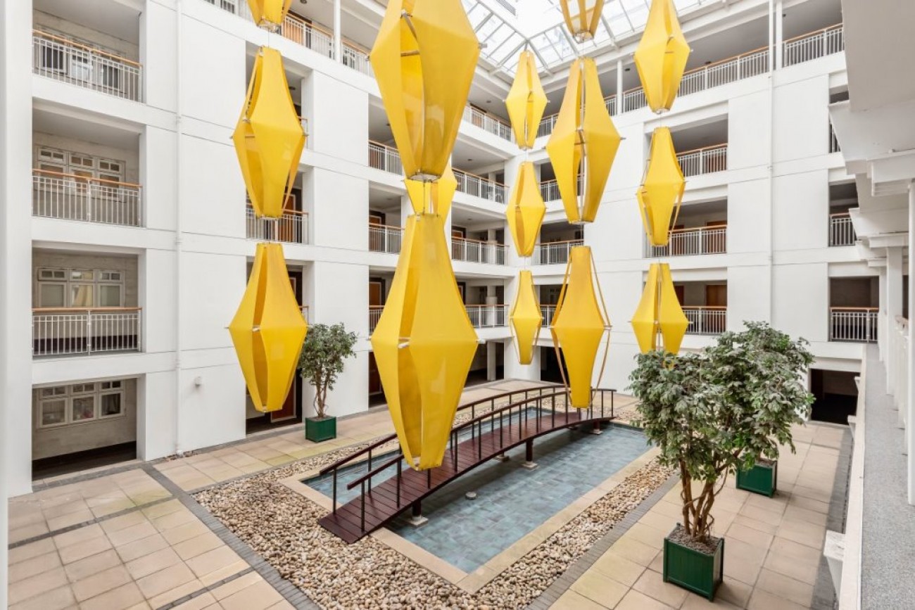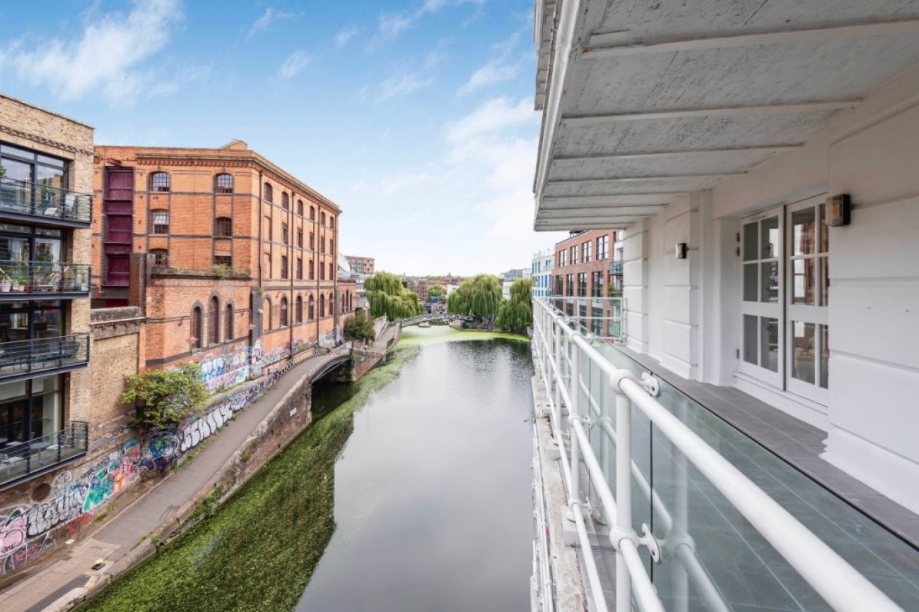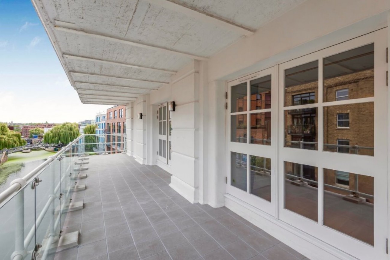 Gilbey House is one of the premier buildings in Camden, adjacent to the Regent's Canal. A former gin distillery and warehouse with a concierge service throughout the day, a caretaker, residents gymnasium, allocated underground parking space and lifts to each floor, with all apartments fronting an impressive central atrium. This remarkable two bedroom lateral apartment, arranged over the second floor, is one of the largest in the building and provides over 1300 square feet of living space and an impressive 36 x 7'5 ft terrace, offering one of the most spectacular views of Regent's Canal and Camden Lock.