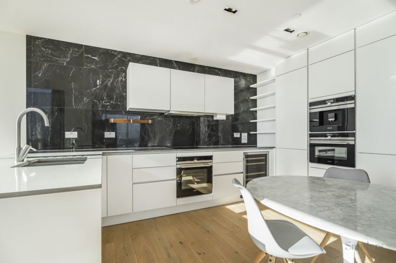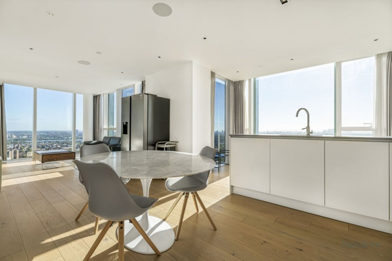 Stylish three bedroom, three bathroom flat located on the thirty-sixth floor of the Skyline Apartments buildings which forms part of the Woodberry Down development by Berkley Homes. The property offers approximately 1404 square feet of modern living space. The apartment features three generously sized bedrooms, including a primary bedroom with ample storage space and an en-suite bathroom for added convenience. The second and three bedrooms are equally spacious and well-lit with one more en suite shower room. The open-plan kitchen and living room area is the heart of the home, providing a perfect setting for entertaining or relaxing with amazing views over the West and East Reservoir and the skylines of London. The kitchen is well-appointed with modern appliances and offers plenty of counter space and large windows flood the living area with natural light, creating a bright and inviting atmosphere. One of the standout features of this apartment is the expansive balcony which is located off one of the bedrooms. Additional features for residents are a gym, swimming pool, we work space and 24 hour concierge. Amenities of Manor House are a minutes away and the transport links to the City are a short walk.